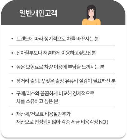 초기비용&관리비NO! 중고차 처리부담NO! 보험사 개인처리NO! 재산세건보료NO!